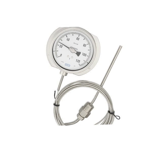 ترمومتر ویکا مدل EN13190 نوع کپیلاری برای مواردی طراحی شده که محل نمایش دما (گیج) باید از محل اندازهگیری واقعی فاصله داشته باشد؛ مثل تابلوهای کنترل، دیواره مخازن، یا نقاط مرتفع سیستمهای پایپینگ. انتقال دما از طریق لولهی فلزی نازک و منعطف (capillary) انجام میشود. دقت، مقاومت مکانیکی بالا و طراحی تماماستیل این مدل، آن را گزینهای استاندارد برای صنایع نفت، گاز، پتروشیمی، و HVAC کرده است.