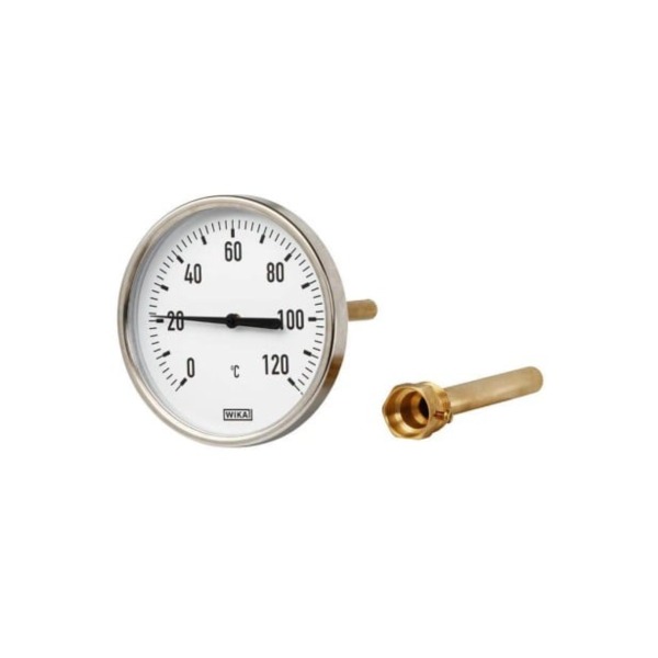 گیج دما ویکا مدل A50 یک دماسنج صنعتی از نوع بایمتال (Bimetal Thermometer) با طراحی اقتصادی و کاربرد گسترده برای صنایع عمومی است. این مدل بدون نیاز به برق، دما را با استفاده از مکانیزم بایمتالیک اندازهگیری و نمایش میدهد.